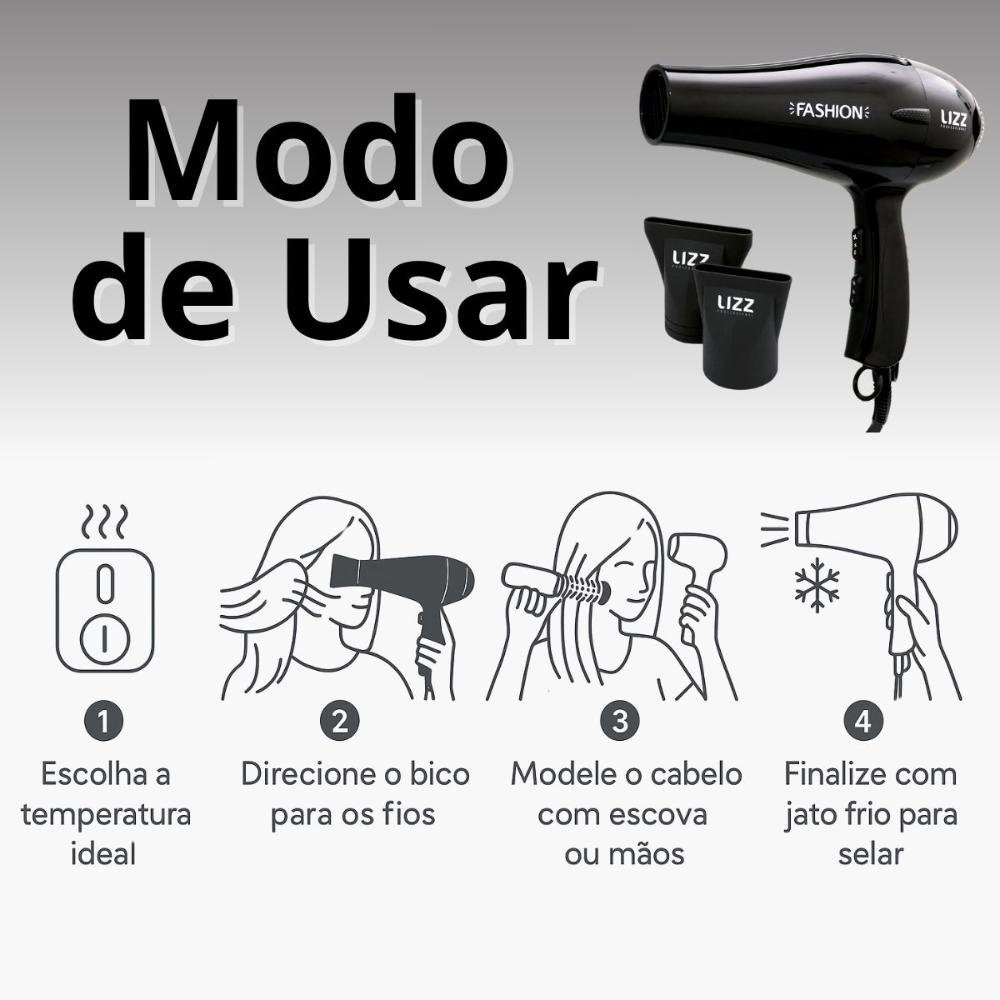 Secador Fashion Lizz Professional | Tecnologia e Estilo para Seus Fios Transforme seu ritual de beleza com o Secador Fashion da Lizz Professional, onde o design moderno encontra performance profissional. Com cores vibrantes e tecnologia de ponta, esse secador vai além de apenas secar: ele modela, dá brilho, reduz o frizz e proporciona resultados dignos de salão no conforto de casa.